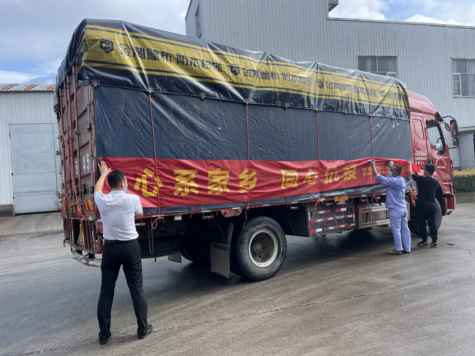 7月6日,蘇州青年工作站在公司舉行裝車、發車儀式,為疫區送去防疫物資。